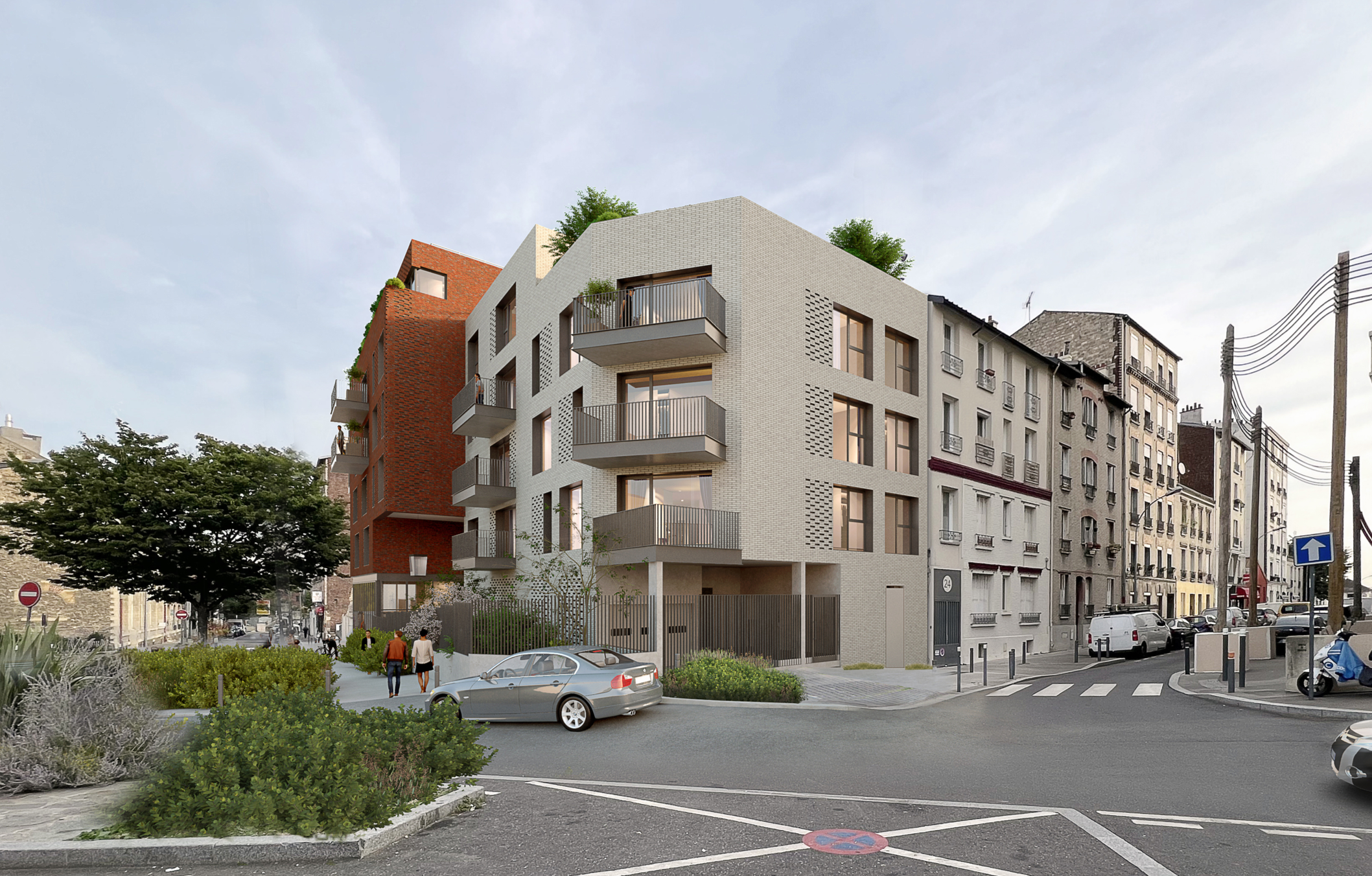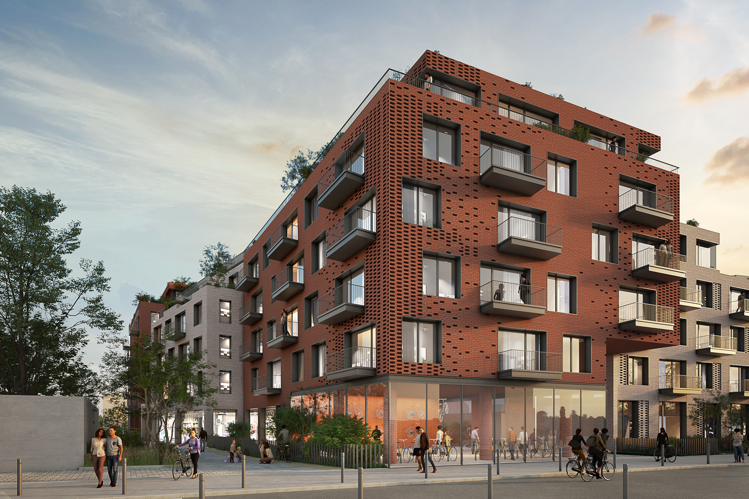 Notre réflexion sur la vie à l’échelle humaine s’exprime par le fait bâtir des immeubles de faible hauteur et de combattre l’uniformité, l’industrialisation. Toutes les façades sont différenciées par les jeux de trames, les coloris naturels des briques, les traitements d’ouvrants et bien sûr les jeux de hauteur.