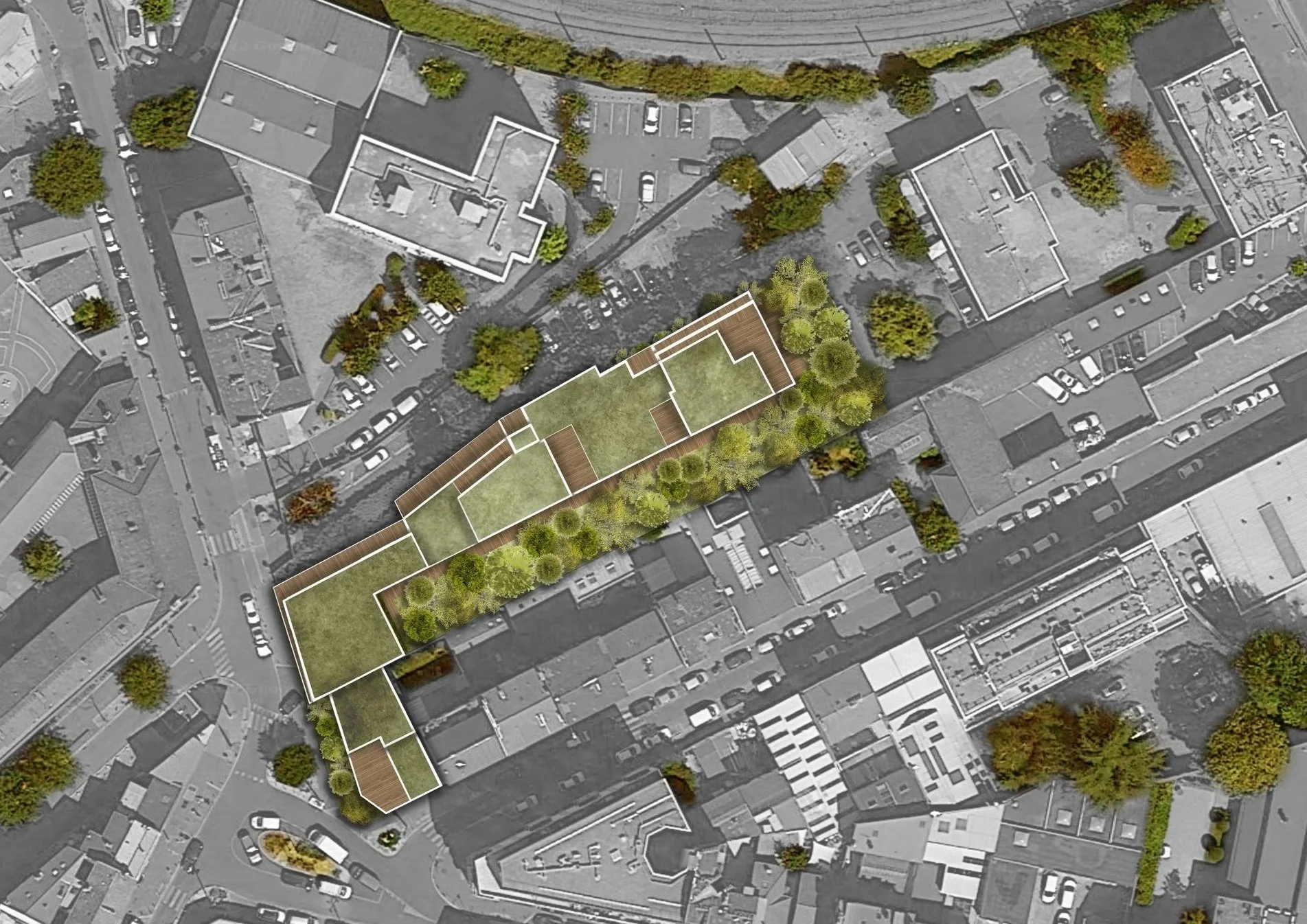 Nous nous inspirons des abords résidentiels du site pour favoriser l’insertion urbaine du projet et adopter une démarche vertueuse. Celle-ci s’exprime par l’ouverture des formes développées et la perméabilité visuelle sur le grand jardin intérieur. Ce nouvel îlot de fraicheur sera au service des habitants et du quartier. Les toitures sont mobilisées pour créer des terrasses généreuses ou abriter une végétation intensive.